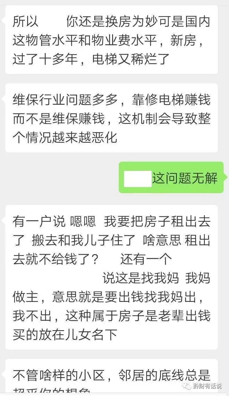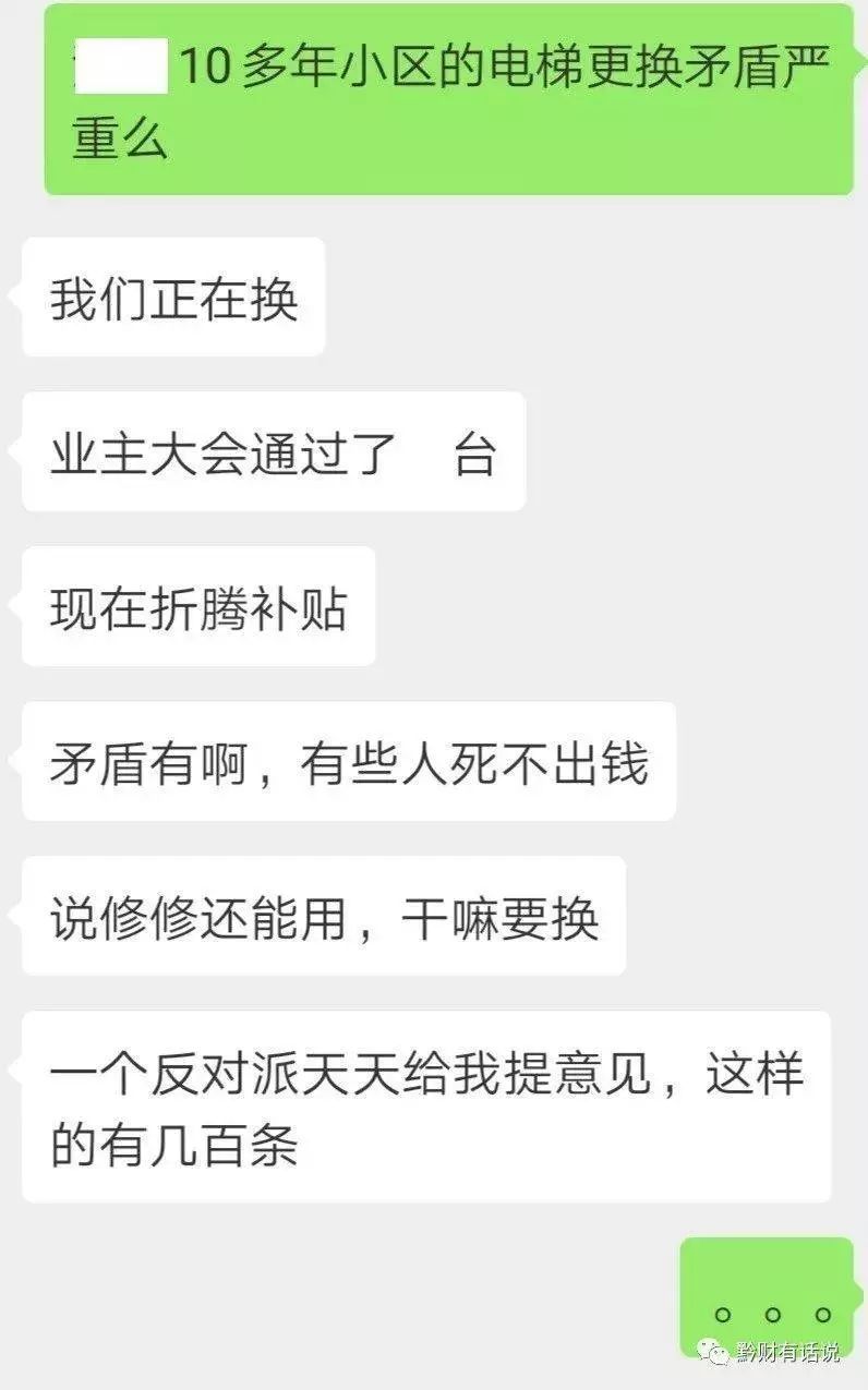 这位师姐有一套自住用的一线城市顶级学区大四居,房龄过了15年,同样面临更换电梯和保持小区品质的难题。