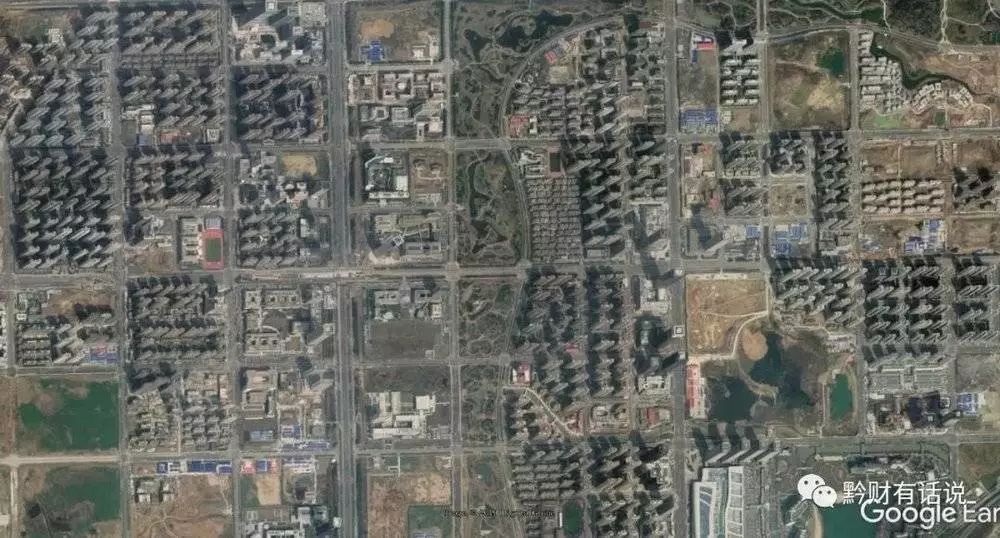 一方面是土地政策让住宅只能向垂直方向发展,另一方面就是各地新建城区普遍采用大街区制,这让高楼层大体量小区成为主流,1000户算正常,2000户不稀罕,小区公共空间总量大。下图是某中部城市的新城区,感受下小区的楼层高度和街区尺度。