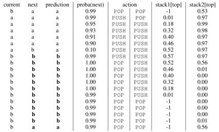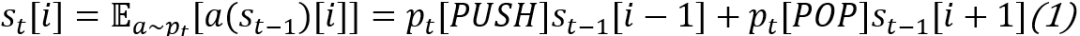 这里需要注意的是,正常的压栈弹栈操作是不可微的,所以这里可以使用期望近似(分别为对栈内部元素更新操作和栈顶元素更新操作):