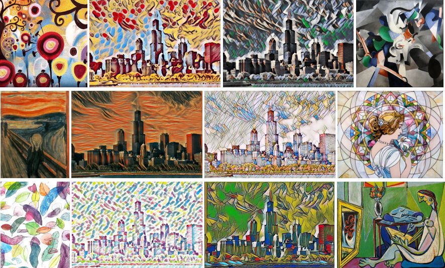 你对风格迁移可能已经很熟悉了,这可以说是最著名的一种通过人工智能生成的艺术。如下图所示: