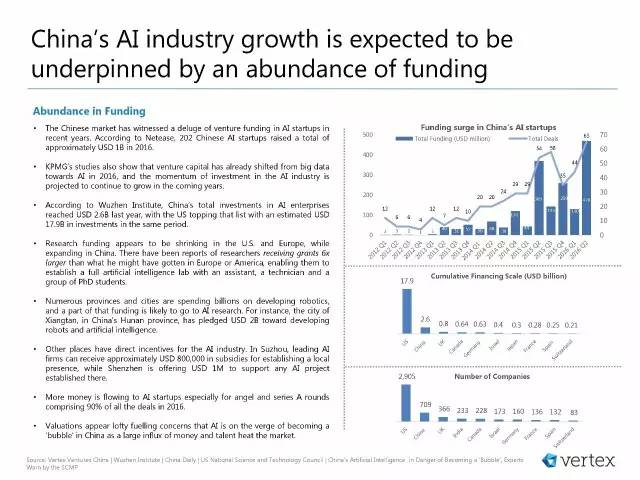 根据网易报道,2016年202个中国AI初创公司募集了近10亿美元;