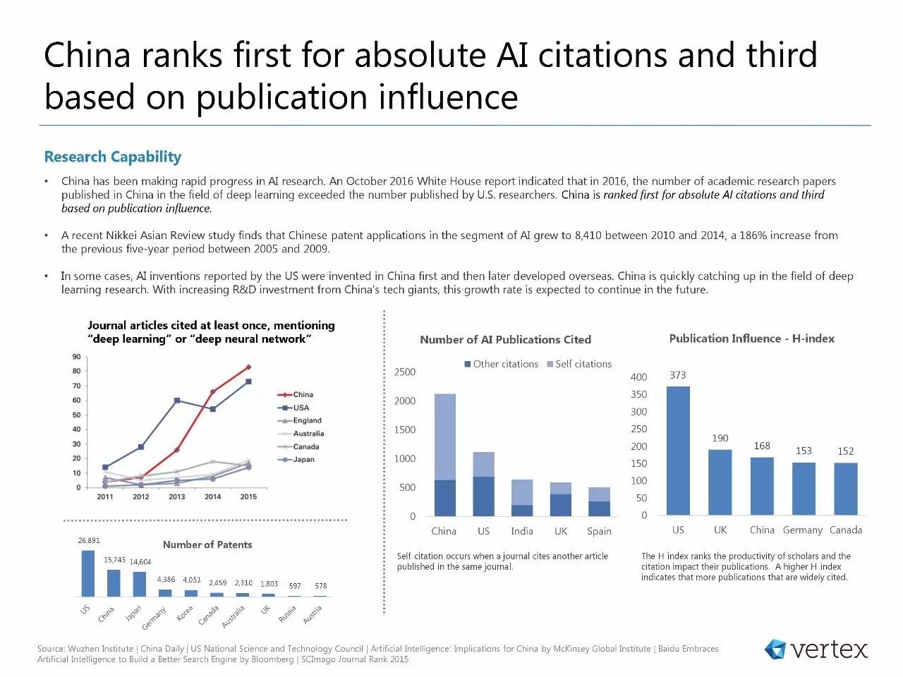 研究:在AI学术论文的绝对引用率上,中国排在第一;在基于学术影响力的排名上,中国排在第三。