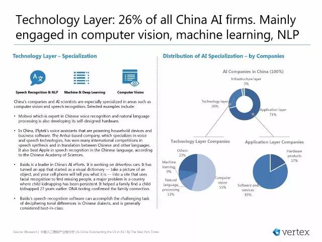 技术层面:中国所有AI公司中,26%主打计算机视觉、机器学习和NLP