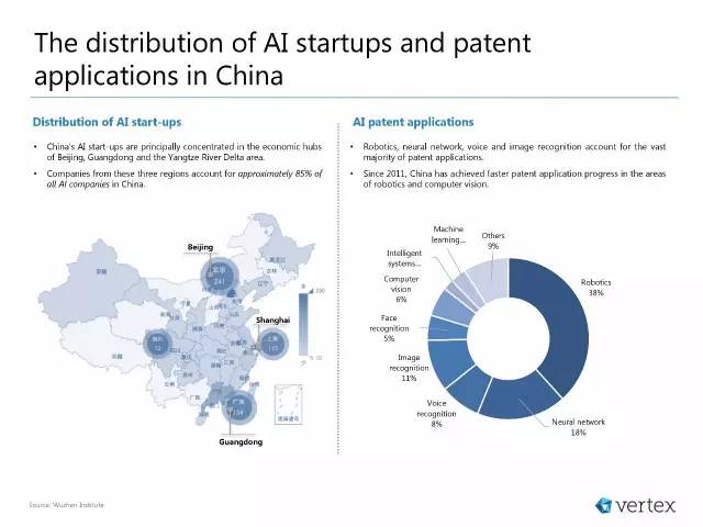 中国AI初创公司主要集中如下经济圈:北京、广东、长江下游