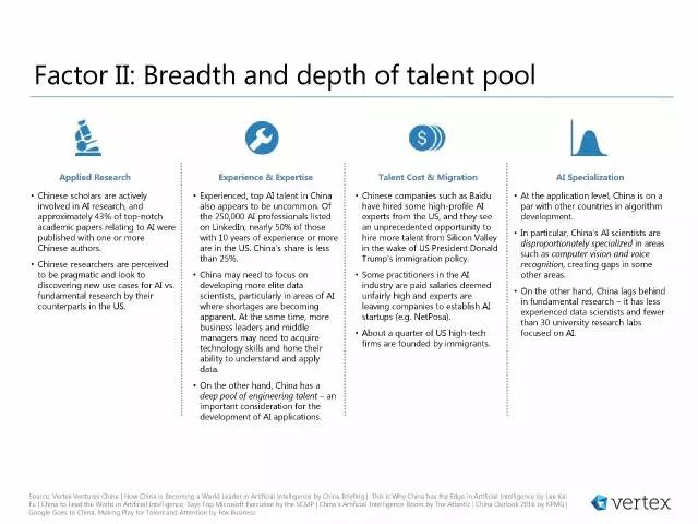 另一方面,中国有着丰富的工程人才储备,这是AI应用得以发展的一个重要考量因素。