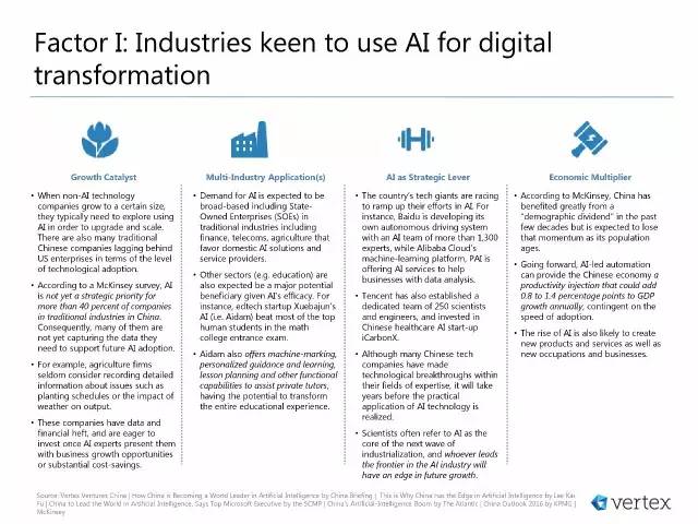 其中,重要的是,第1和第2个要素在中国在成为全球AI中心的道路上赋予了其独特的竞争优势。