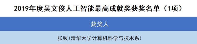 11月18日,2019年度吴文俊人工智能最高成就奖决定授予清华大学计算机系教授、中国科学院张钹院士,以表彰他在搜索、规划和问题求解等领域建立形式化理论和高效算法做出的卓越贡献。