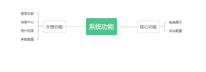 外围的模块基本常见的就是用户权限、消息中心(包括系统提示、公告、邮件、短信等等)、登录功能、参数配置。