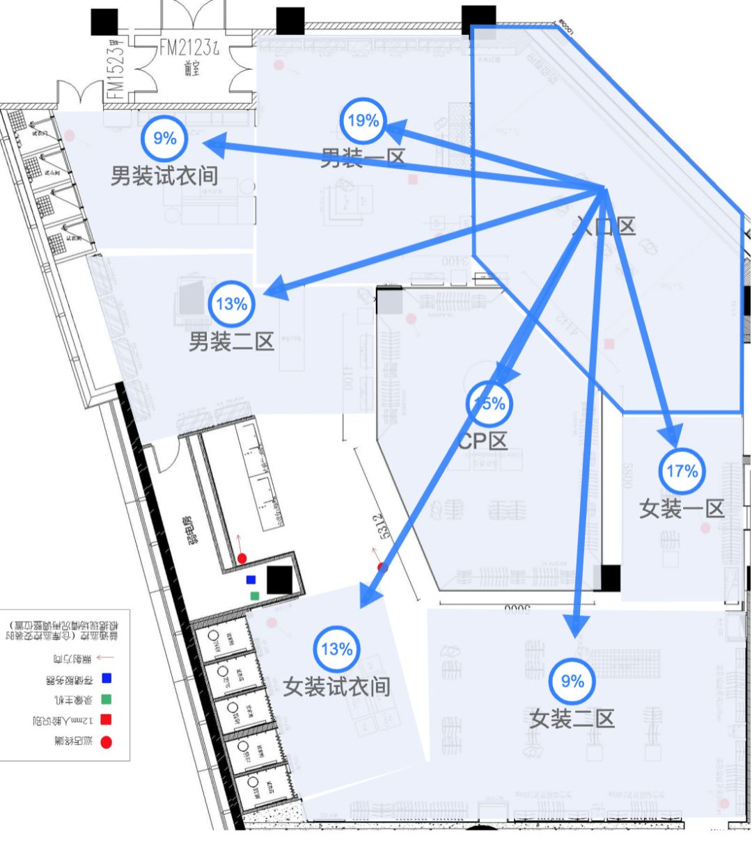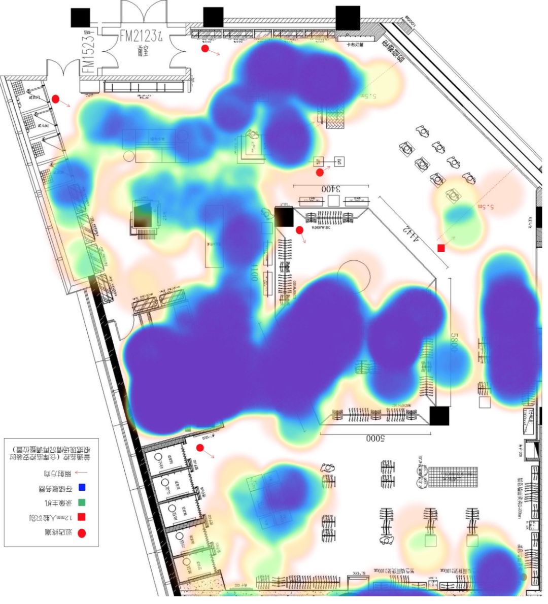 我们分别以区域热力图和区域动线图来说明我们的业务展示效果,区域热力图和区域动线图分别展示如下: