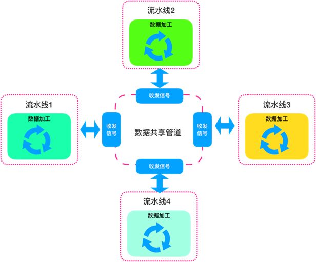 人工流水线:指的是需要人工将算法过程进行相应的分割,并人肉将任务用独立进程来运行,数据通道需要高度定制化。