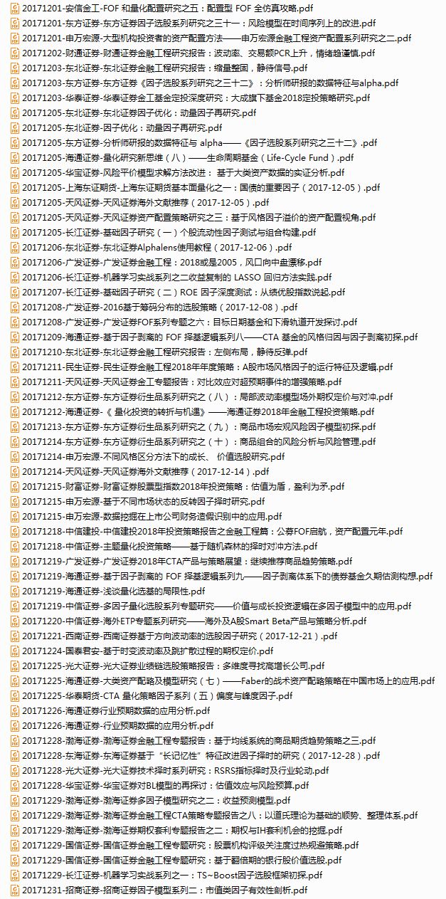 很抱歉,这么晚才把2017年12月的研报资源推送出来。