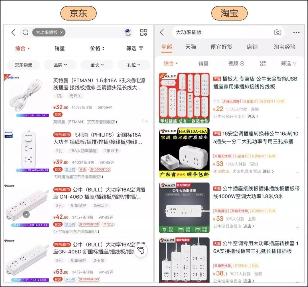 京东的商品搜索页面 VS 淘宝的商品搜索页面