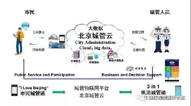 基于云计算、物联网、大数据构建了将整个市民生活和城市管理的空间作为开放众创空间的新网络、新数据环境,形塑了大众参与的智慧社会,而智慧城市的“云”与“端”是新网络、新数据环境下大成智慧的必然要求。“云”与“端”的结合,将基于城域开放众创空间推动大众创新,实现智能融合、随时、随地、随需、随意的城市管理与服务应用,进一步彰显个人的参与和群众的力量。图三为北京城管依托城管云打造“端到端”服务。