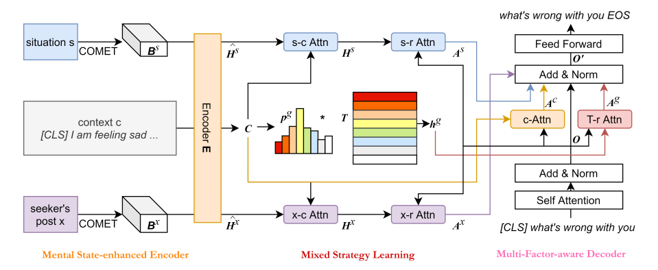 MISC主要包含三个部分:1.Mental state-enhanced encoder 2. Mixed strategy learning module 3. Multi-factor-aware decoder