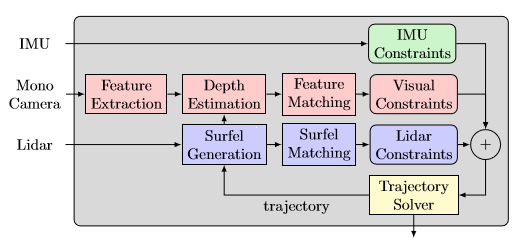我们提出了一种构建一般3D环境地图的新方法,在这样的环境中,高效的几何或视觉信息不是任何地方都保证的,并且设备运动与手持式系统一样是无约束的。连续时间的SLAM算法以互补的方式集成了激光雷达、摄像头和惯性测量单元,所有的传感器均为优化提供约束。我们提出的算法旨在扩大可构图的环境区域,因而提高了通用移动构图的可靠性和实用性。该算法的一个关键组成部分是深度的不确定性与视觉特征的结合,这对于噪声表面是有效的,并且允许具有和不具有深度估计的特征以统一的方式建模。结果表明,在具有挑战性的环境中本文的方法比目前最好的基于激光或者视觉的SLAM方法有更大的构图范围。