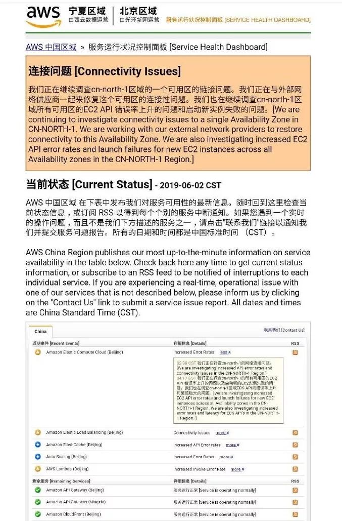 3.亚马逊中国云服务昨日突发大规模故障,官方称受施工方挖断光纤影响