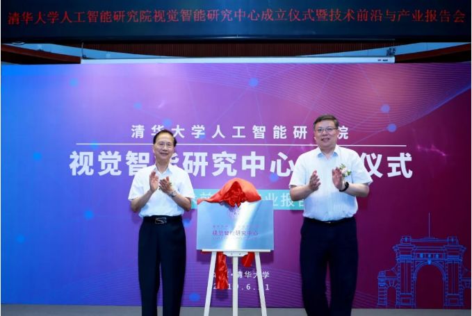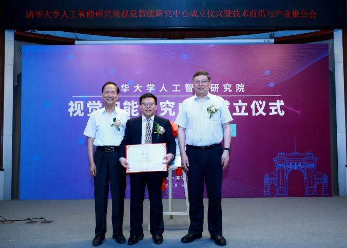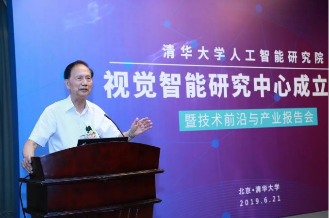 AI 科技评论按:2019 年 6 月 21 日,清华大学人工智能研究院视觉智能研究中心成立仪式暨技术前沿与产业报告会在清华大学 FIT 楼举行。这是继知识智能研究中心、听觉智能研究中心、基础理论研究中心、智能机器人研究中心、智能人机交互研究中心、智能信息获取研究中心之后成立的第七个研究中心。清华大学副校长、清华大学人工智能研究院管委会主任尤政院士,清华大学人工智能研究院院长张钹院士出席成立仪式并共同为中心揭牌。清华大学人工智能研究院院长助理朱军教授主持了成立仪式。