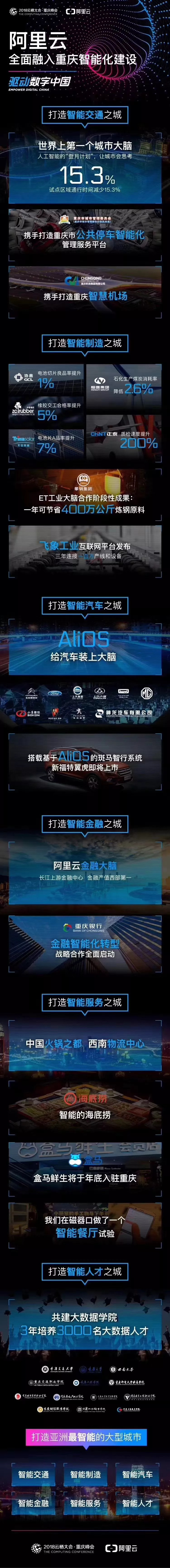 重庆不是一张白纸,它在IT制造、车联网、通信产业等引领西南地区,因此阿里云选择了从制造开始切入重庆的智慧城市建设,依次在川渝一带落地阿里人工智能与行业相结合的成果:ET工业大脑、ET城市大脑、ET航空大脑、ET农业大脑......