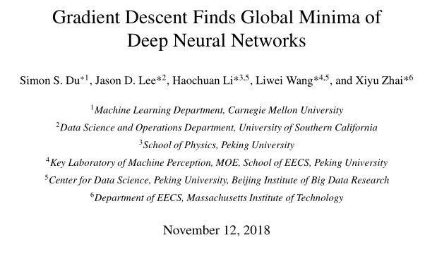 在目标函数非凸的情况下,梯度下降在训练深度神经网络中也能够找到全局最小值。本文证明,对于具有残差连接的超参数化的深度神经网络(ResNet),采用梯度下降可以在多项式时间内实现零训练损失。