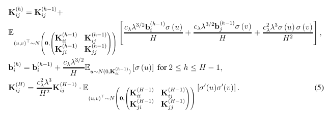 注意,这里的λ和全连接前馈神经网络中的不同,因为这里的λ只由K(0)决定,一般来说,除非两个数据点是平行的,否则λ总是正数。
