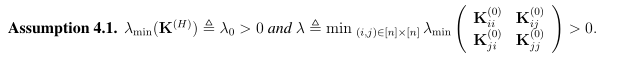 以上是网络宽度m趋于无限时的渐进Gram矩阵。我们特做出如下假设,该假设条件决定了收敛速度和过参数化数量。
