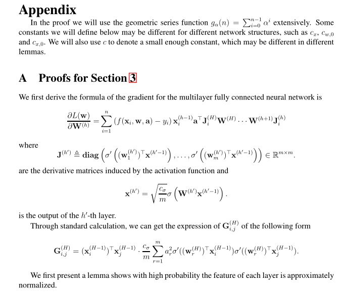 其次,作者使用Li和Liang[2018]的观察结果,如果神经网络是过参数化的,那么每个权重矩阵都接近其初始化状态。本文在分析深度神经网络时,需要构建更多深度神经网络的架构属性和新技术。