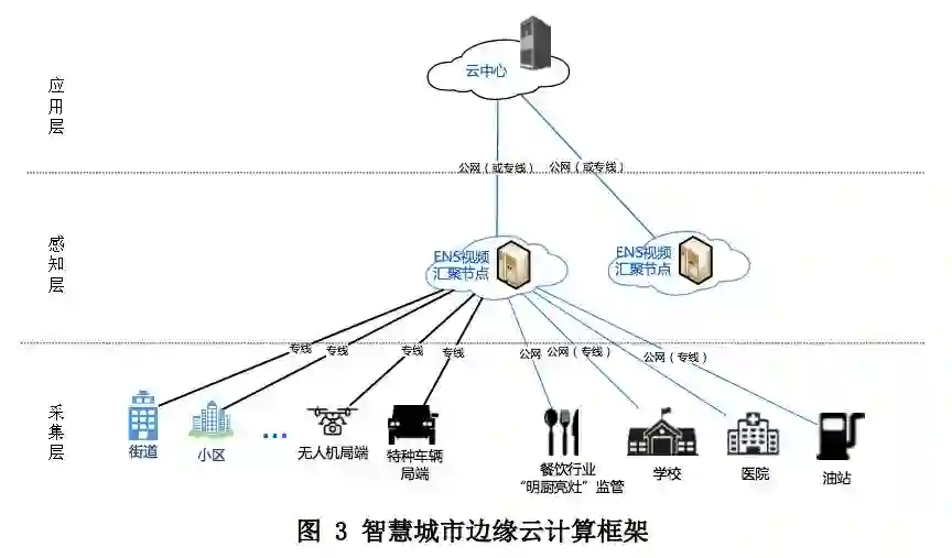 在边缘云计算的架构下,智慧城市的建设过程中整个系统分为采集层、感知层、应用层。