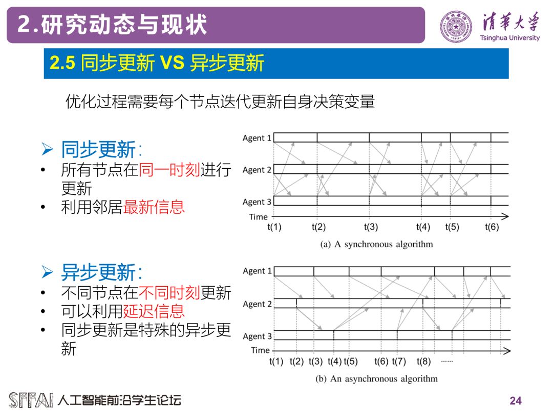 此外,已有的算法大多数为同步更新式的算法,即所有节点需要同时开始一次迭代更新,导致计算快的节点需要等待计算慢的节点。为了解决这个问题,可以考虑采用异步更新式的算法。实际上,目前异步算法的设计和研究受到了广泛的关注。