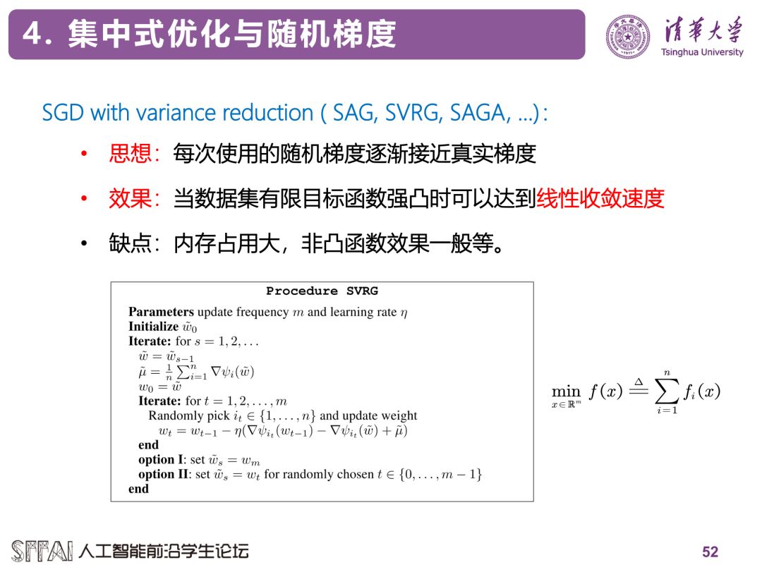 目前也有一些利用Variance reduction机制的改进随机梯度法能在理论上达到线性的收敛速度,如SAG, SVRG [6], SAGA等。
