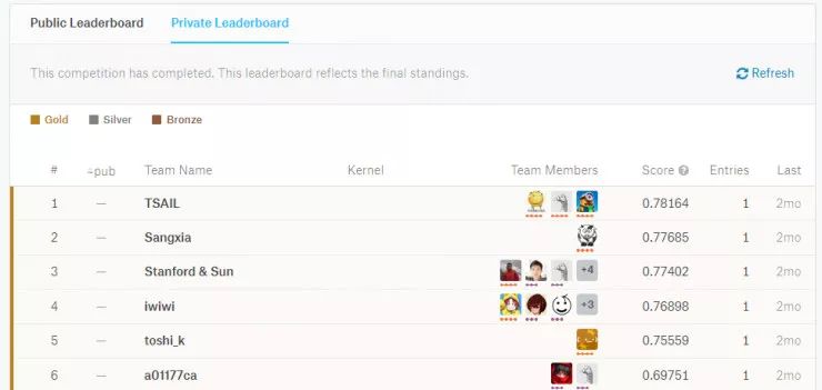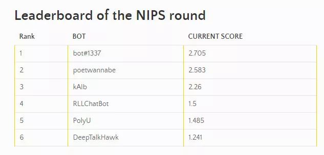 从目前公开的排行榜上可以看到,中国选手中,来自香港理工大学和复旦大学的 PolyU 团队在NIPS Round 中取得第五名。
