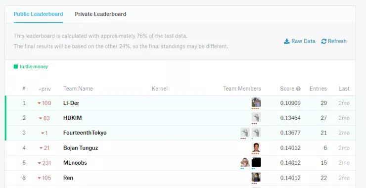 该项比赛由 Sloan-Kettering 癌症中心 (MSKCC) 发起,在Kaggle上举办,目前关于比赛的讨论也有很多,大家要是对这项比赛有兴趣,可以前往https://0x9.me/WeisQ查看详情。目前中国选手也取得了不错的成绩,可以看到 kaggle 账户为 Li-Der 的中国选手取得了 Public Leaderboard 第一名,kaggle 账户为 Yang 的中国选手取得了 Private Leaderboard 第三名。