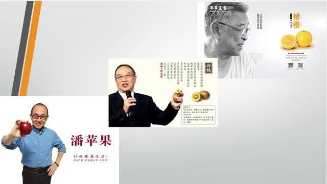 这张PPT上有三张图,这三个产品、三种水果你们也可能都吃过。褚橙、潘石屹、柳传志,后两个其实是受了褚橙的启发去做的。大家去注意、研究一下到底哪个卖得比较好。