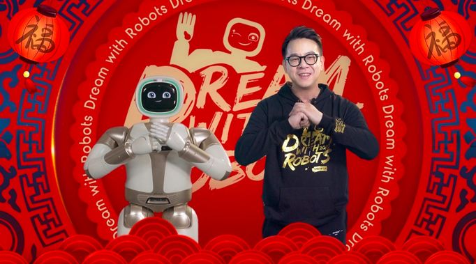 优必选Walker和“机器人爸爸”周剑一起给全国人民拜年