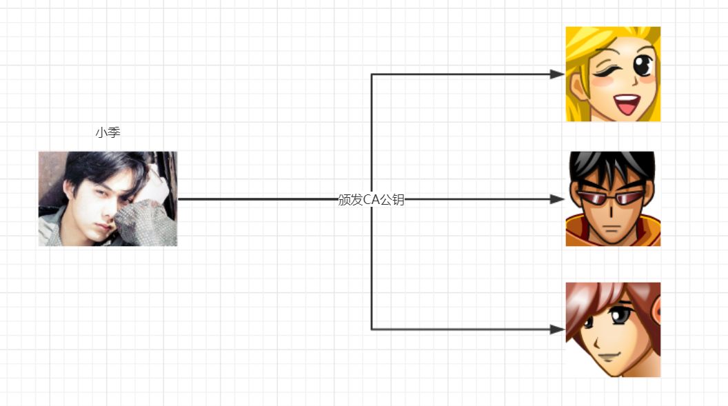 如果只是给公钥再对称加密或非对称加密的话,必定还是会衍生出鸡生蛋,蛋生鸡的问题。这该怎么办呢?此时,需要一个权威机构来主持大局。于是同学们决定推选德高望重的学生会主席小季(CA)来担此重任。