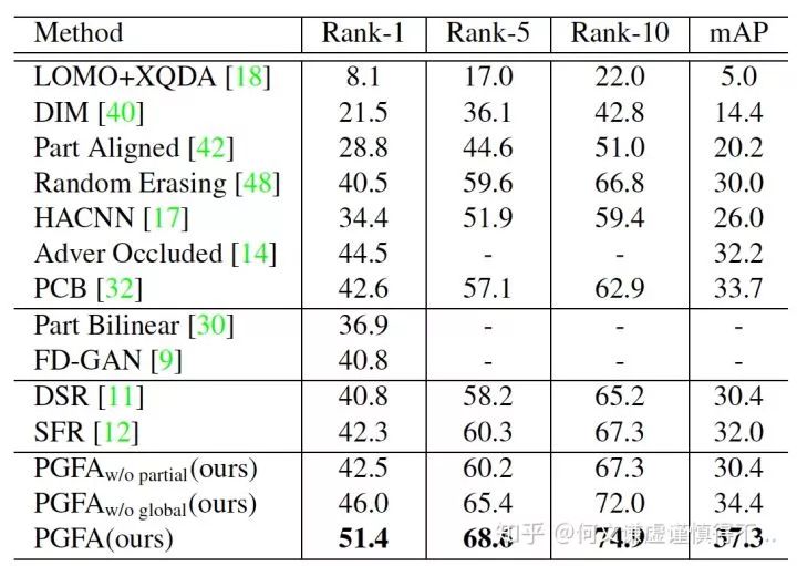 实验结果就不加赘述,根据作者提供的数据,该模型无论是在传统benchmark例如Market还是Duke都是stoa的,在自己构建的专为测试遮挡问题的数据上也是最好表现。