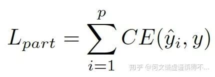 Loss function也非常直观,首先是partial feature branch部分的loss,上面提到了每一个part都会预测一个id,因此这里的id loss是cross entropy的和:yi是每个part的id预测结果,y是ground truth,CE代表cross entropy。