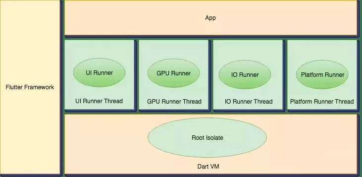 Platform Runner和iOS平台的Main Thread非常相似,在Flutter中除耗时操作外,所有任务都应该放在Platform中,Flutter中的很多API并不是线程安全的,放在其他线程中可能会导致一些bug。
