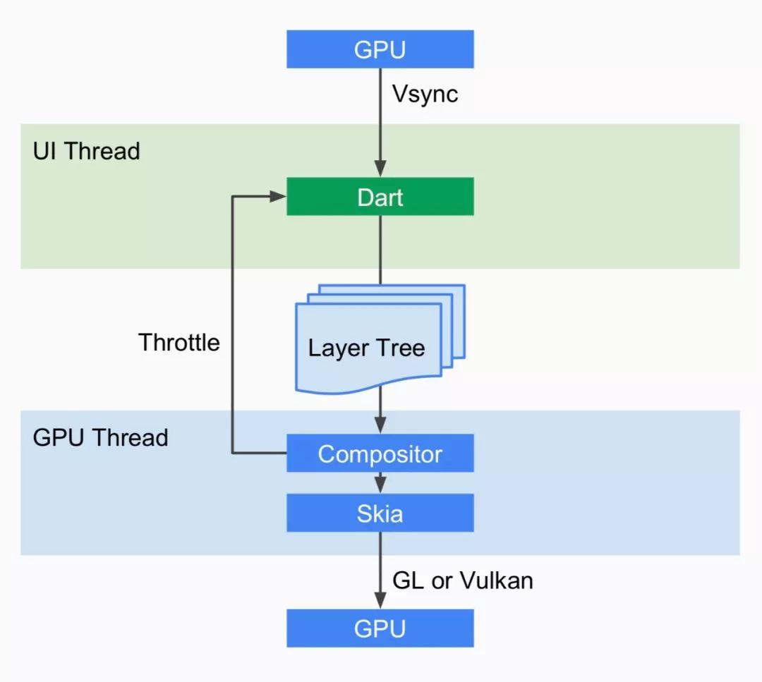 由于对widgets进行layout并生成layer tree是UI Renner进行的,如果在UI Renner中进行大量耗时处理,会影响页面的显示,所以应该将耗时操作交给其他isolute处理,例如来自Native Plugin的事件。