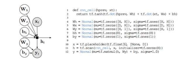 Edward通过tensorflow与概率规划结合,将深度学习和贝叶斯的模型考虑在内。摘自Tran et al. ICLR 2017