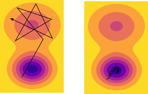 我发现这个想法是有启发性的,因为优化器的参数(在这种情况下是学习率)使得这种方式更有意义。例如,当你增加SGD的学习参数时,马可夫链就会变得不稳定,直到找到大面积采样的局部极小值;也就是说,增加了程序的方差。另一方面,如果你减少学习参数,马尔可夫链慢慢接近狭义极小值,直到它收敛于一个区域;那就是你增加某个区域的偏差。而另一个参数,SGD中的批量大小也可以控制算法收敛的区域是什么类型的区域:小批量的较大区域和大批次的小区域。