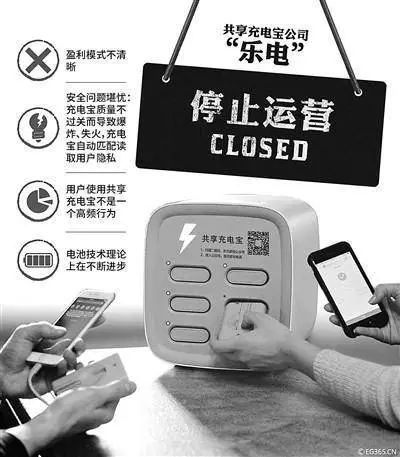 乐电,2015年1月成立,是最早一个进入这个风口的商家,然而在激烈的竞争中不抵资本市场的残酷,已经在2017年10月宣布停止运营,也成为了被爆出的首家倒闭的共享充电宝企业;