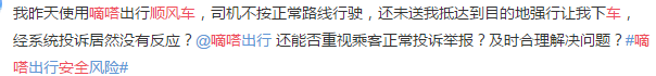 微博上一篇有关滴滴顺风车不上线的微博,都有上千的评论。