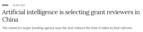 5月14日,《自然》杂志以《人工智能正在选择中国的基金评审人》为题,介绍了中国最大的基础科学资助机构——国家自然科学基金委员会正在利用人工智能工具减少寻找评审人所需的时间。