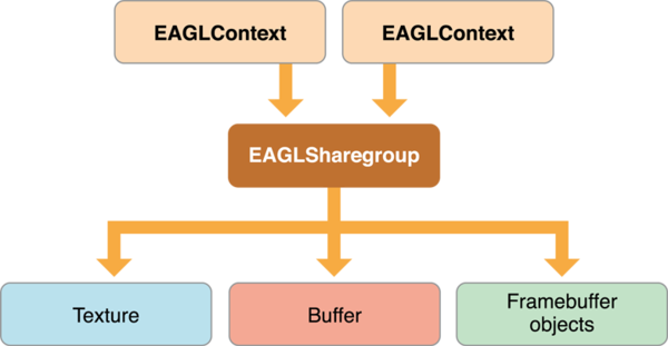 EAGLContext并不直接管理绘制资源,它通过与上下文相关的EAGLSharegroup对象来管理。当创建EAGLContext时,你可以选择创建一个新的sharegroup或与之前创建的EAGLContext共享EAGLSharegroup。