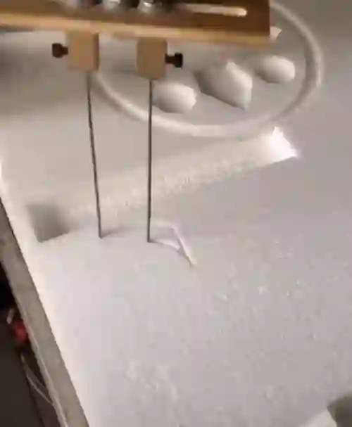 △ 泡沫塑料切割车床利用电热丝刀具,可以切割出形状多样的泡沫塑件,这些泡沫塑件可以进一步用在包装、建筑,还有3D制图教学中。你收到的快递的泡沫塑料包装可能就是这么来的。