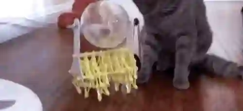 Strander Beast 是物理学家转行的艺术家 Theo Jansen 在90年代发明的利用风能行走的装置。被做成玩具后受到世界人民的欢迎。网友 crabfuartworks 把它和仓鼠球连在了一起。