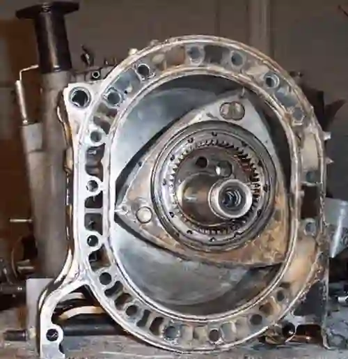 △ 70年代的汪克尔发动机。它属于无活塞内燃机,是德国工程师 Flix Wankel 在1929年发明的。因为汪克尔发动机噪音小,功率重量比比活塞式发动机高,因此受到许多汽车生产厂商的欢迎,它们后来陆续对其进行了改良。