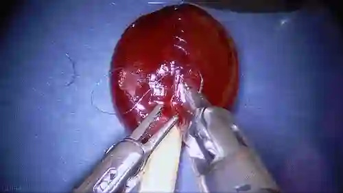 △ 澳洲癌症治疗机构 Peter MacCallum Cancer Centre 展示了一个叫做达芬奇的手术机器人在一个玻璃瓶里给一粒葡萄缝皮的过程。目前我国几十多家医院拥有达芬奇手术机器人。