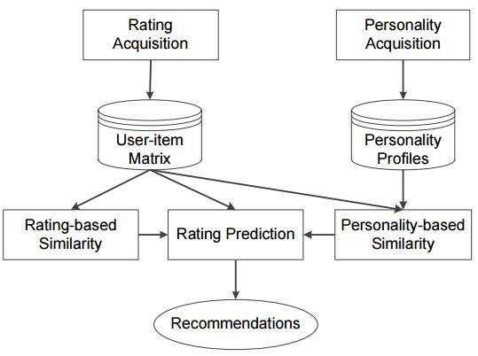 由于用户填写调查问卷需要花费一定的时间,而且问卷中难免会出现主观偏差的问题,因此基于调查问卷的推荐算法在互联网的个性化服务中存在着难以避免的屏障。而基于模型的性格推荐算法希望跨过调查问卷这道屏障,从用户的行为数据中挖掘用户的性格特征,并直接融入到推荐算法中进行推荐。