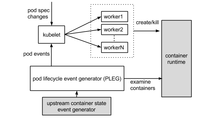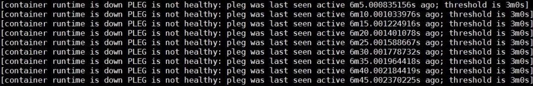 这个报错清楚地告诉我们,容器 runtime 是不工作的,且 PLEG 是不健康的。这里容器 runtime 指的就是 docker daemon 。Kubelet 通过操作 docker daemon 来控制容器的生命周期。而这里的 PLEG,指的是 pod lifecycle event generator。PLEG 是 kubelet 用来检查 runtime 的健康检查机制。这件事情本来可以由 kubelet 使用 polling 的方式来做。但是 polling 有其高成本的缺陷,所以 PLEG 应用而生。PLEG 尝试以一种“中断”的形式,来实现对容器 runtime 的健康检查,虽然实际上,它同时用了 polling 和”中断”这样折中的方案。